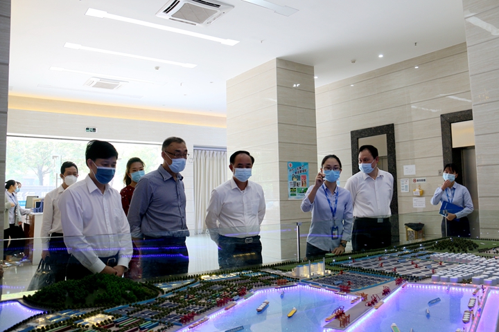 楊文波一行觀摩了博賀新港區(qū)總體規(guī)劃沙盤(pán),詳細(xì)了解了博賀新港區(qū)總體規(guī)劃和在建的粵西LNG造陸、30萬(wàn)噸原油碼頭、10萬(wàn)噸級(jí)成品油碼頭等一批省、市重點(diǎn)項(xiàng)目的推進(jìn)情況。