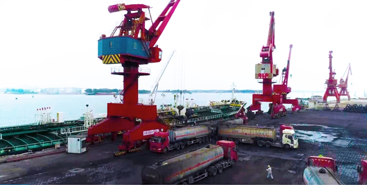 2021年元月,集團(tuán)下屬中油王港公司、港口經(jīng)營(yíng)公司作業(yè)區(qū)內(nèi)裝載車輛穿梭如流、門吊裝卸不停,一派繁忙景象。