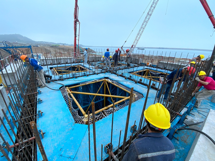 首件C型沉箱首層順利澆筑完成
