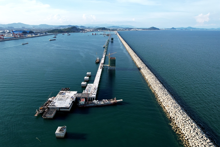 6月29日下午,茂名港博賀新港區(qū)東區(qū)油品碼頭工程水域公用管廊棧橋現(xiàn)澆面層完成澆筑,完成了油品碼頭項目公共管廊橋與碼頭全面貫通,實現(xiàn)了“海陸對接”,一舉貫通了博賀新港區(qū)的“大動脈”。