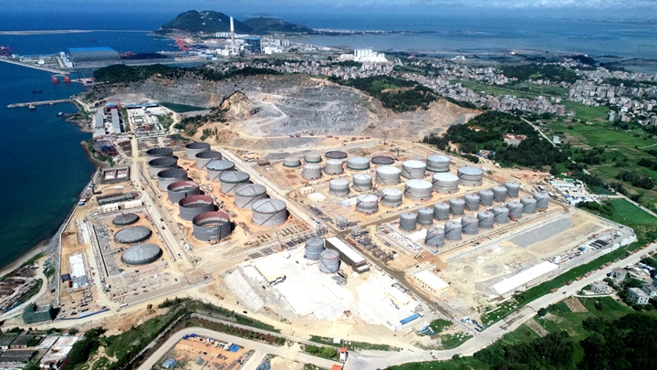 茂名港博賀新港區(qū)東區(qū)化工倉儲項目完成罐體安裝,項目總體進度完成82%;