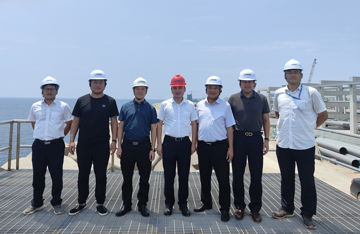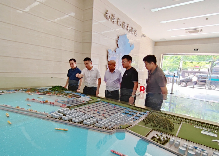 陳建興一行先后到了博賀新港區(qū)東區(qū)化工倉(cāng)儲(chǔ)、化工碼頭、油品碼頭及公共管廊等項(xiàng)目實(shí)地考察。調(diào)研組一行對(duì)茂名港博賀新港區(qū)的發(fā)展規(guī)模及取得建設(shè)成果表示贊嘆。