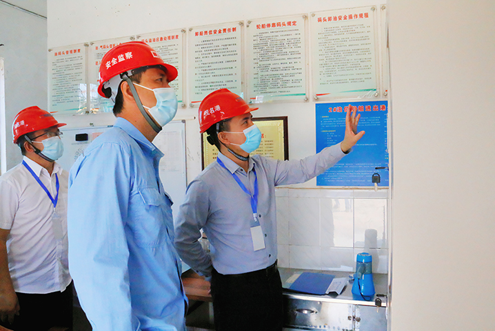 在中油王港及港口經(jīng)營(yíng)公司,督導(dǎo)組一行認(rèn)真檢查生產(chǎn)作業(yè)及疫情防控各項(xiàng)保障措施落實(shí)情況,并詳細(xì)向一線工作人員詢問工作流程、人員值守情況及生活狀況。