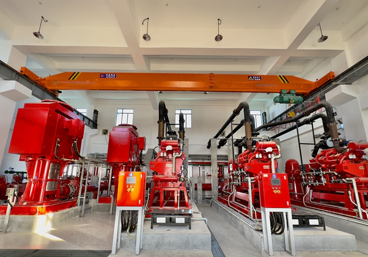 據(jù)悉,本次油品碼頭項(xiàng)目在公用工作樓設(shè)置了“三常三備”消防泵組,即三臺(tái)常用的電動(dòng)消防泵和三臺(tái)備用的柴油消防泵,通過架設(shè)在公共管廊上聯(lián)通公用工作樓消防泵房和碼頭泊位的消防炮塔的消防管道,為博賀新港區(qū)東區(qū)13個(gè)液體化工品碼頭提供消防海水,這是整個(gè)港區(qū)東區(qū)消防系統(tǒng)的核心組成部分,對(duì)保障碼頭的安全生產(chǎn)運(yùn)營(yíng)的有著重大意義。電動(dòng)消防泵和柴油消防泵兩個(gè)重要消防設(shè)備均采用 UL/FM 雙認(rèn)證企業(yè)的產(chǎn)品,其產(chǎn)品技術(shù)水平和認(rèn)證參數(shù)范圍,在國(guó)內(nèi)乃至全球同行中均處于領(lǐng)先水平。該消防泵采用了10KV高壓供電,功率達(dá)到800KW,多級(jí)離心長(zhǎng)軸的結(jié)構(gòu)使得整個(gè)泵組高度達(dá)17米、重量達(dá)10噸。矗立在碼頭前沿的兩座高達(dá)17米的消防炮塔,同時(shí)擁有電動(dòng)消防水炮和電動(dòng)泡沫炮,具備就地操控、無線操控和消防控制室操控三種操控方式,并且炮塔的噴射半徑達(dá)100米,足以應(yīng)付海上出現(xiàn)的各種險(xiǎn)情。 在單機(jī)試運(yùn)行前,油品碼頭黨支部充分發(fā)揮項(xiàng)目一線戰(zhàn)斗堡壘作用,組織業(yè)主單位生產(chǎn)部、施工單位、監(jiān)理單位、設(shè)備廠家對(duì)機(jī)泵設(shè)備單機(jī)試運(yùn)行方案進(jìn)行了數(shù)輪嚴(yán)格的會(huì)審,研究討論了方案內(nèi)容存在的問題并提出了修改意見和建議,并對(duì)方案中涉及到的重點(diǎn)工作、具體事項(xiàng)進(jìn)行了安排。