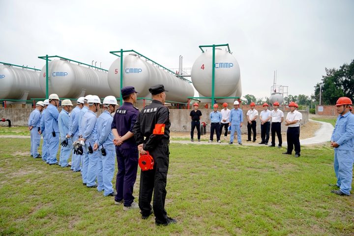 按照集團黨委工作部署,4月2日,集團黨委副書記、總裁肖炳璋率隊深入到各下屬企業(yè)、各項目經(jīng)理部督查安全生產(chǎn)工作,并隨機抽查中油王港公司球罐區(qū)碳五泄漏的應急處置。